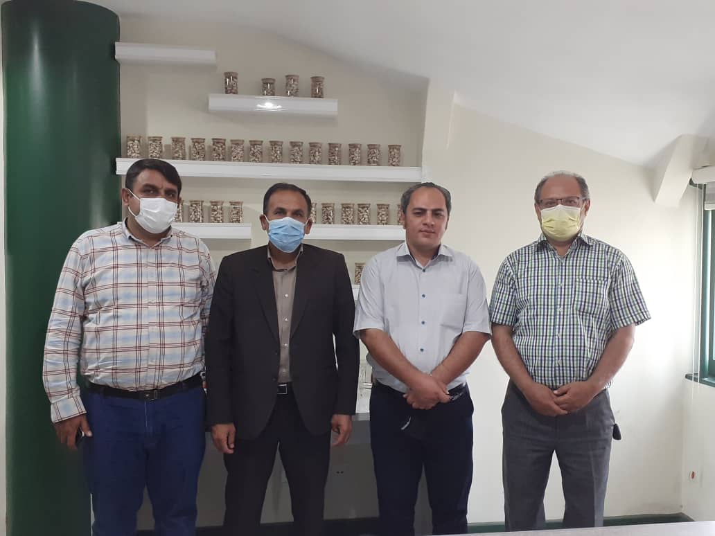 از راست به چپ مهندس حیدریان و اردلان و مهندس رضایی دبیر انجمن پسته و مهندس انجم شعاع عضو هیئت مدیره انجمن پسته