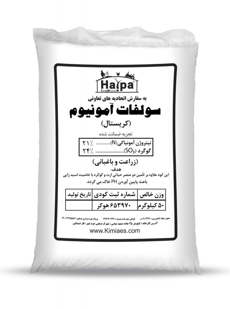 کود سولفات آمونیوم کریستال هارپا از۲۱درصد ازت و۲۴%گوگرد تشکیل شده .