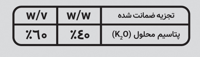 پتاسیم از مهم ترین عناصر پرمصرف در رشد و نمو گیاهان بوده که در درشت شدن محصول و رنگ پذیری و کیفیت محصول و همچنین مقاومت گیاه نسبت به انواع تنش های محیطی مانند کم آبی و شوری و تسهیل جذب عناصر غذایی مانند آهن و منگنز و … نقش بسزایی دارد.